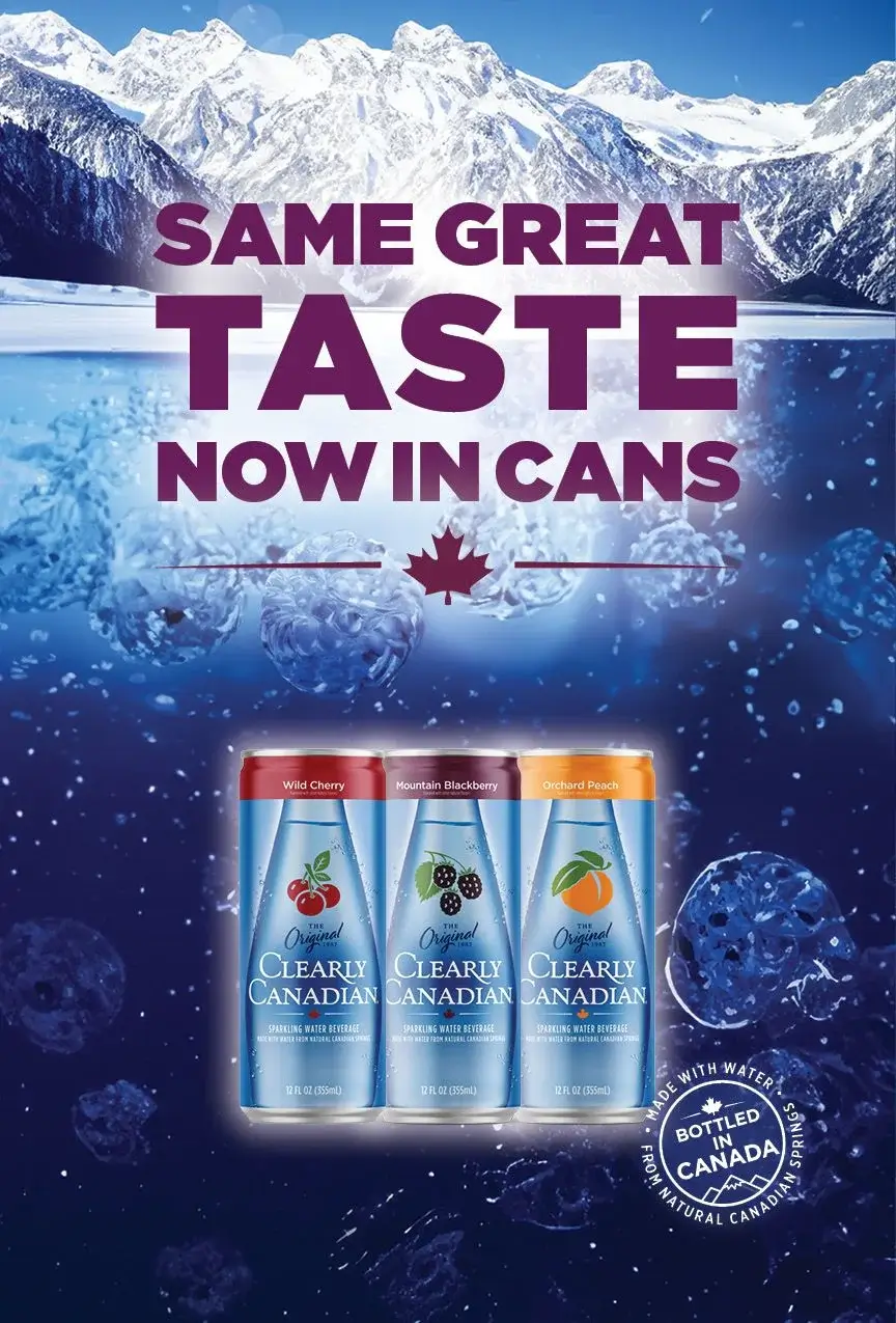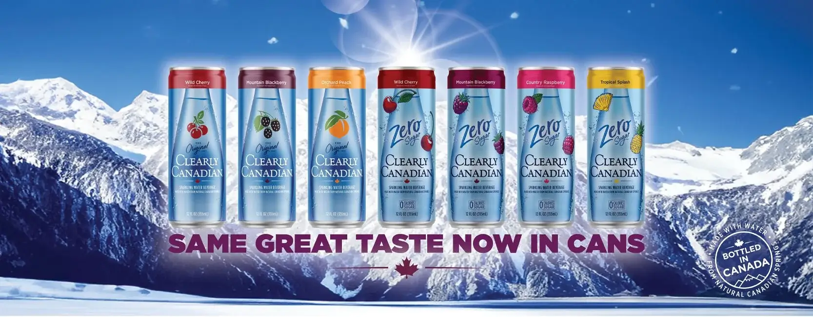 Welcome to the world of Clearly Canadian, North America’s premium sparkling alternative. Bold flavour is in our nature. We craft flavoured sparkling water beverages with pure Canadian spring water from source, natural flavours & simple ingredients, in eco-friendly packaging only. Because that’s the Canadian thing to do. Stay a while, explore and follow us on social media to keep in touch!