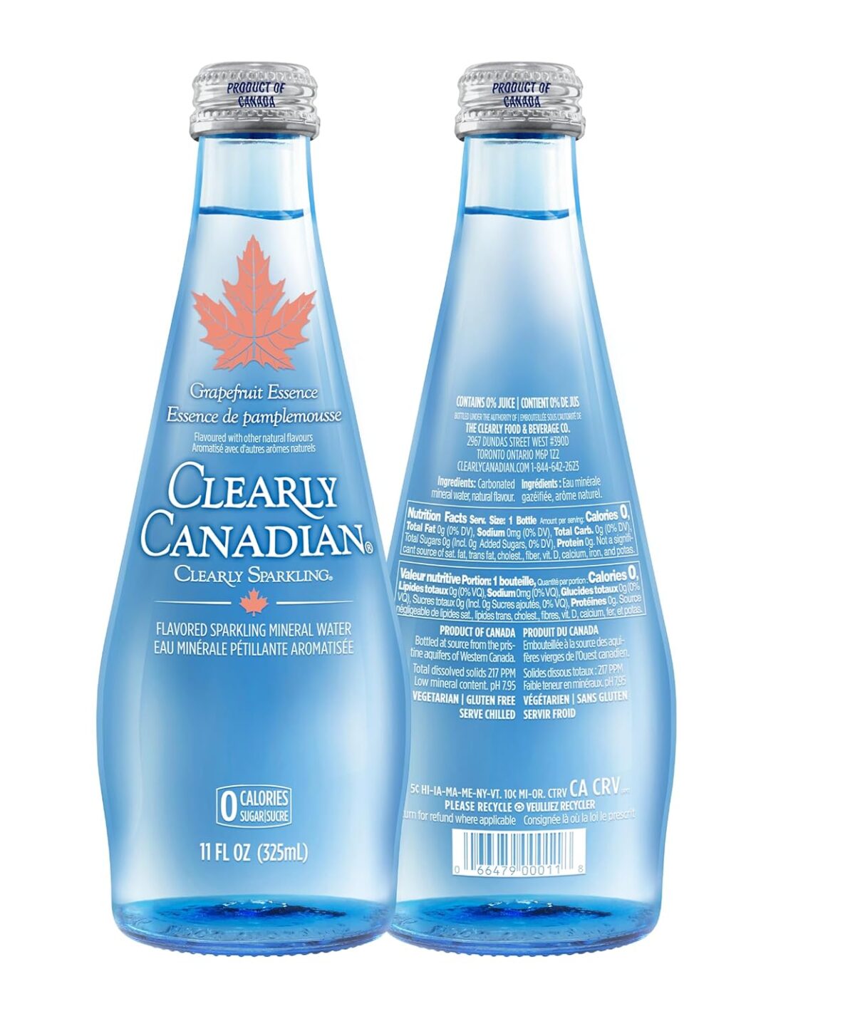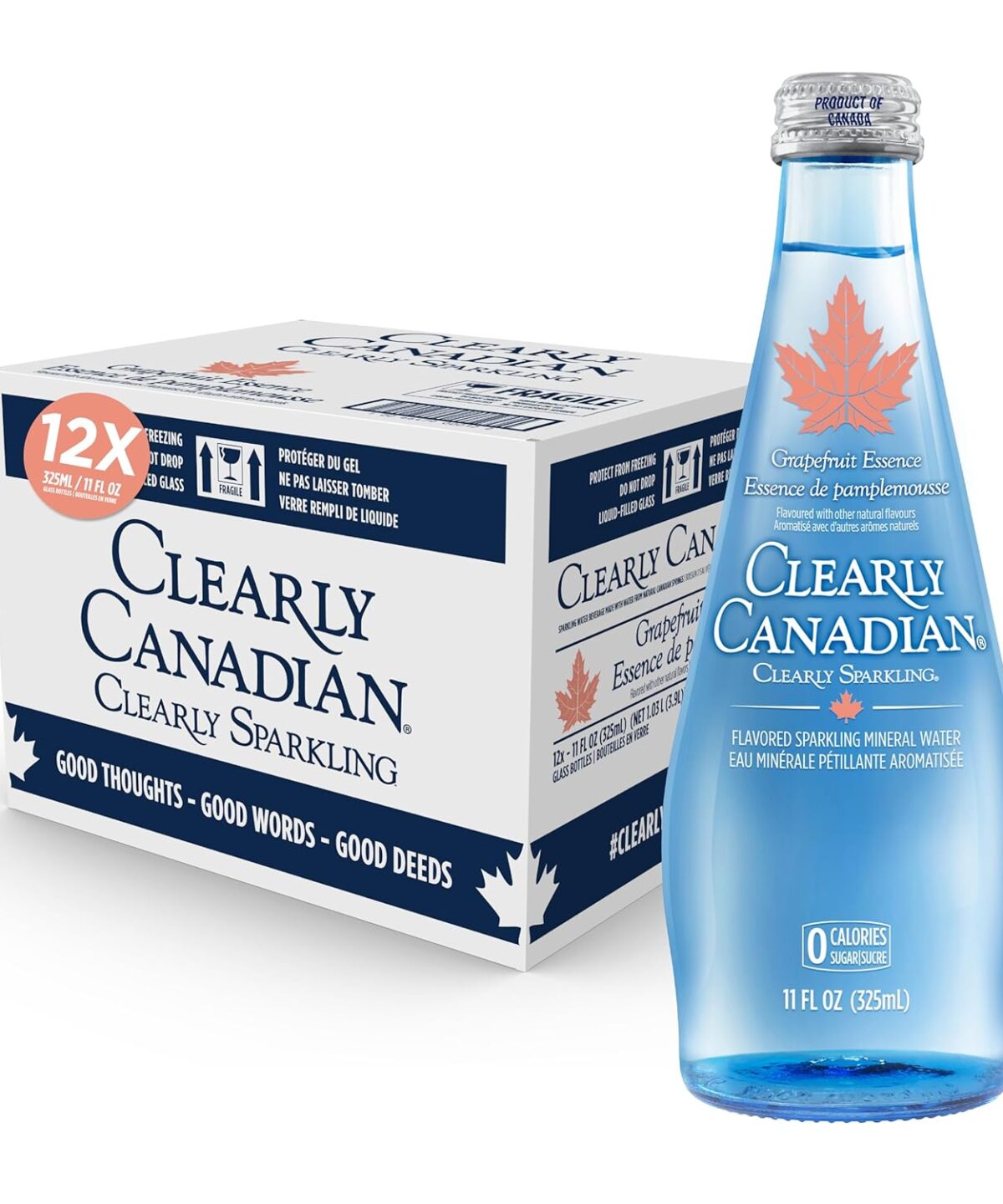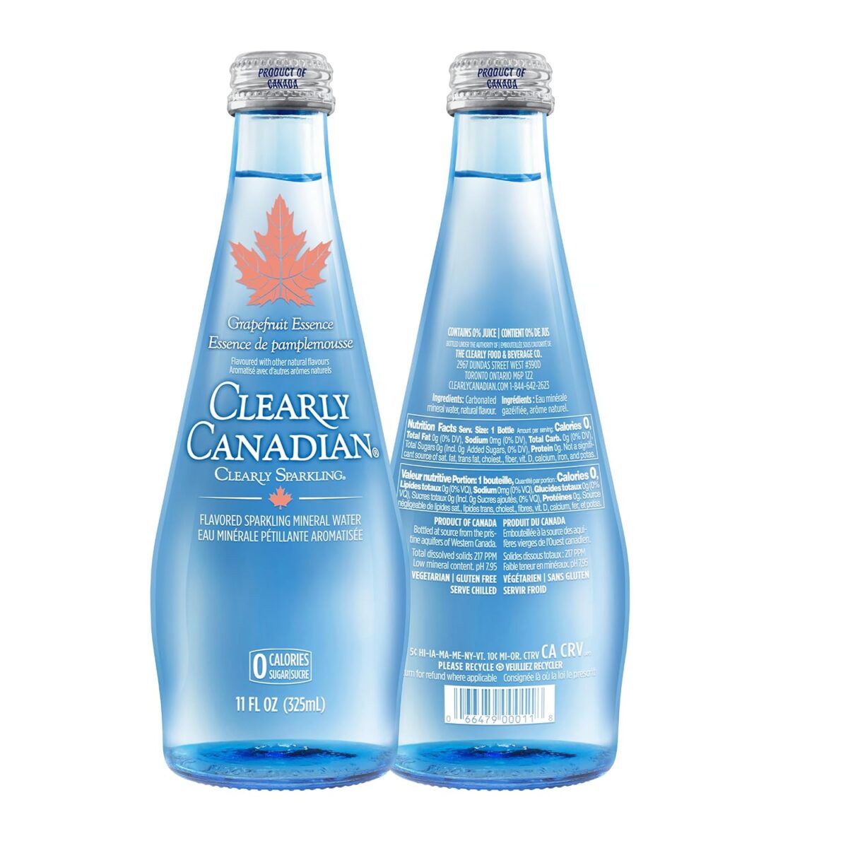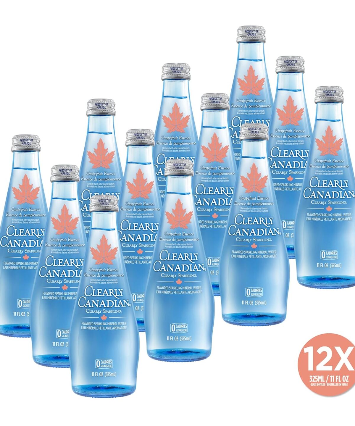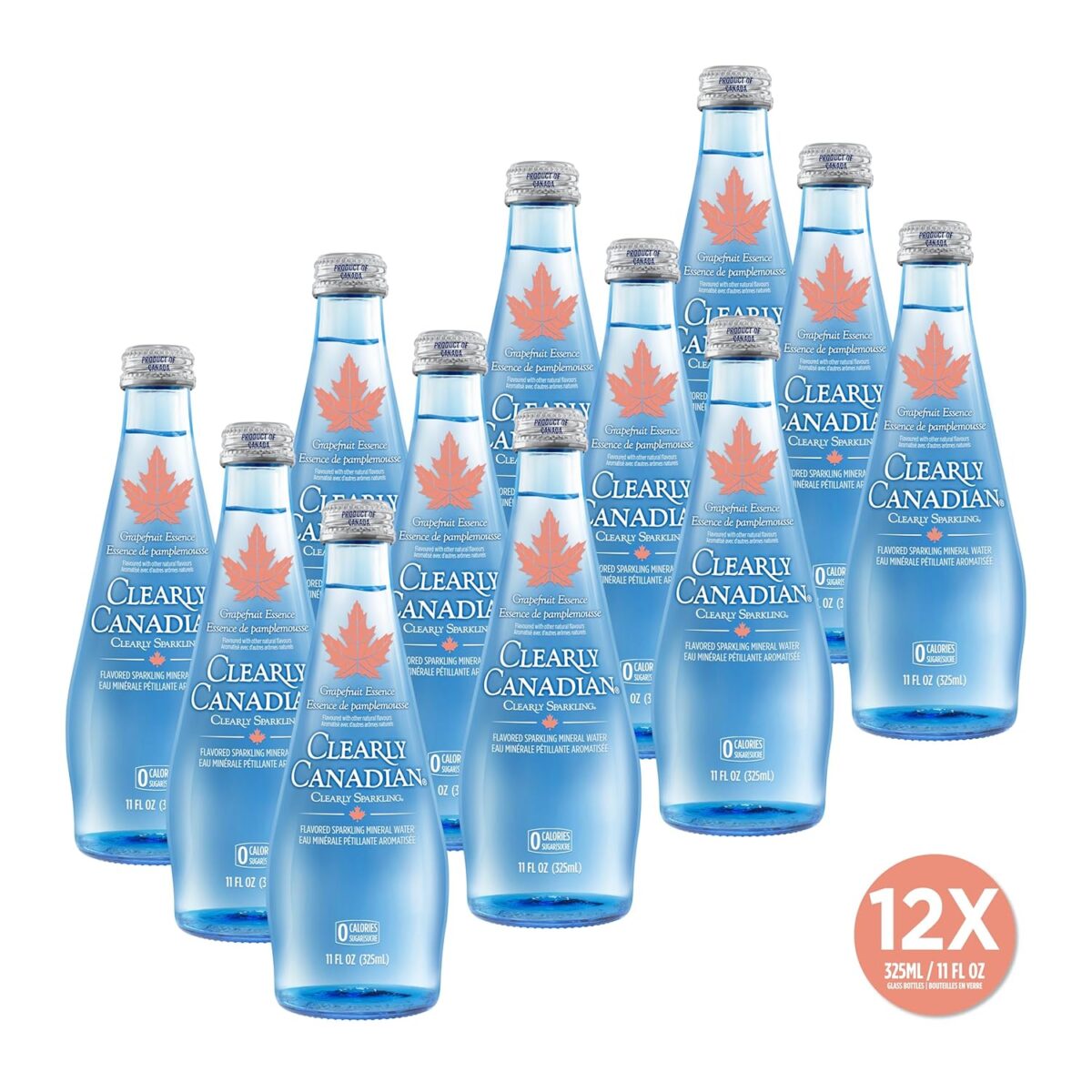 Clearly Canadian Clearly Sparkling Grapefruit Essence Unsweetened Flavored Sparkling Mineral Water, Zero Sugar & Zero Calories, 1 Case (12 Bottles x 325mL)