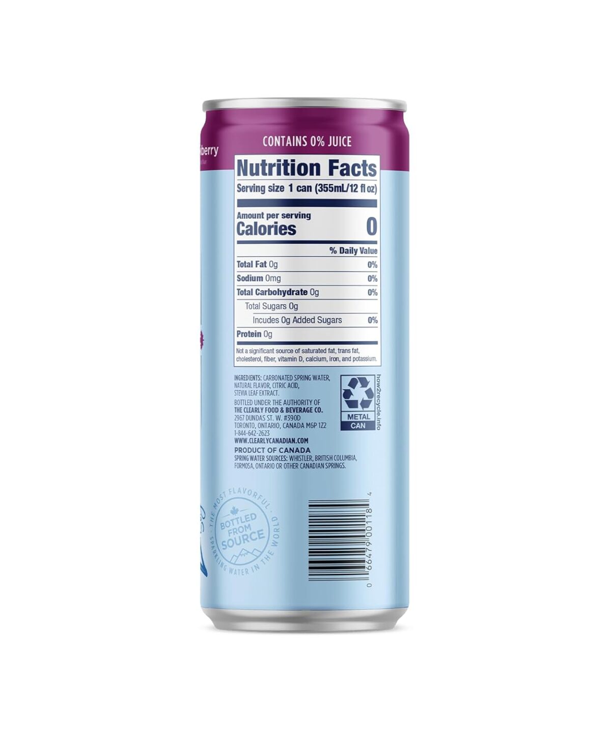 Clearly Canadian Zero Sugar Forest Blackberry Sparkling Water Beverage, Zero Sugar & Zero Calories, Diet Soda Alternative, 12 Fl Oz Can (Pack of 24)