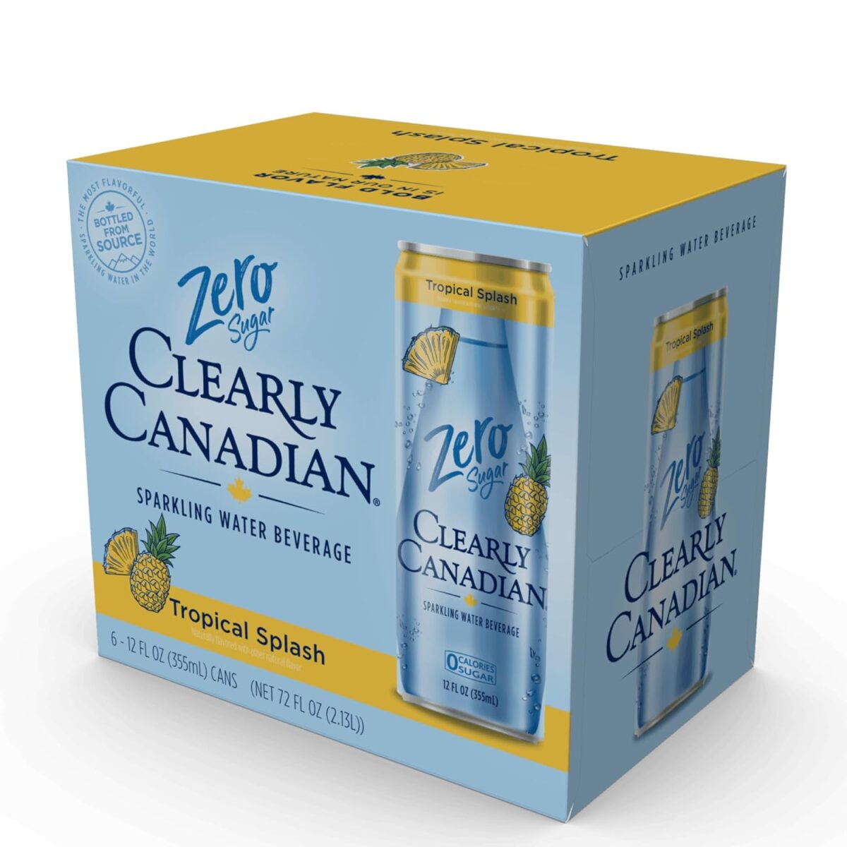 Clearly Canadian Zero Sugar Tropical Splash Sparkling Water Beverage, Zero Sugar & Zero Calories. 1 Case (24 cans x 12 fl oz)